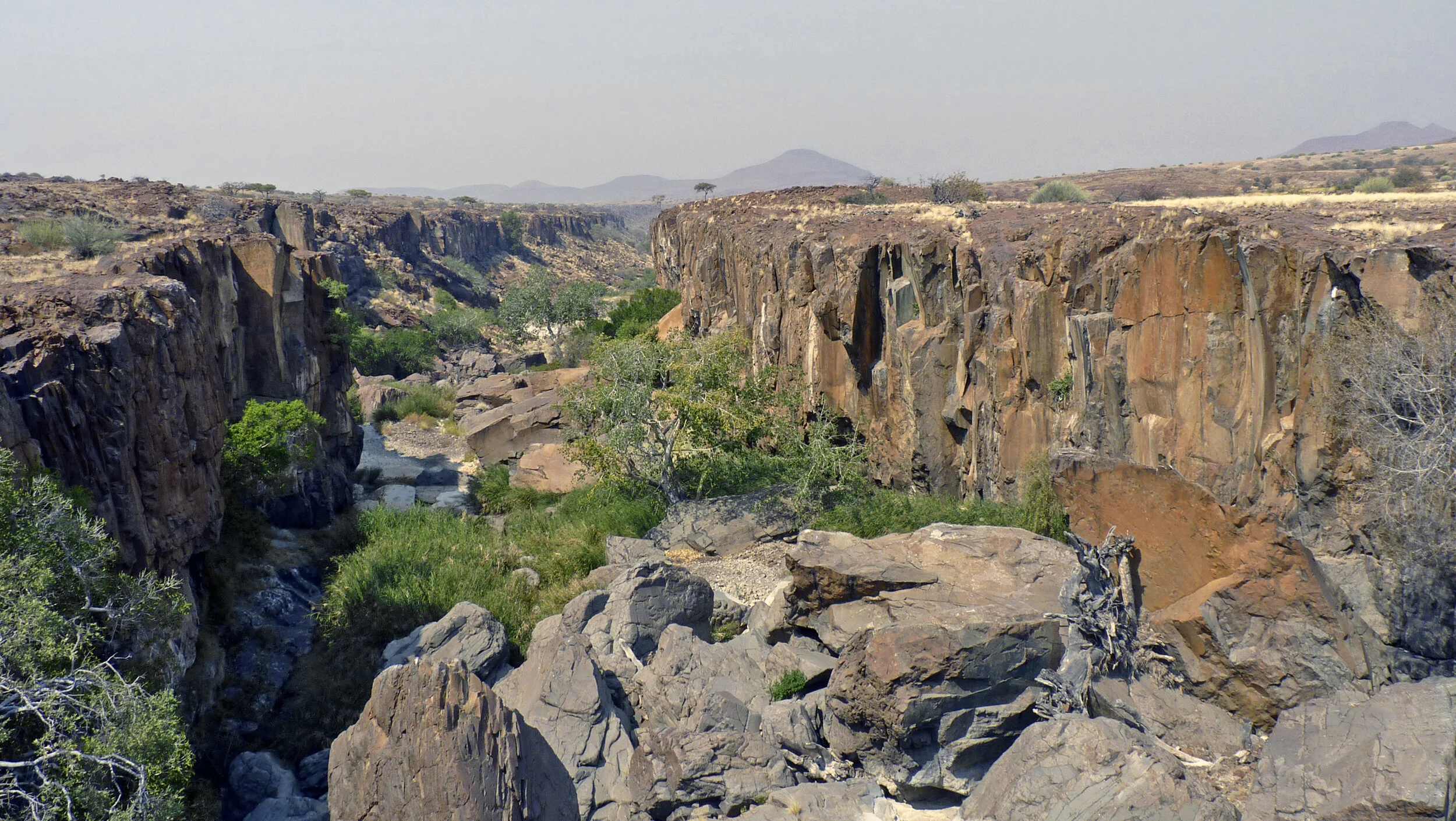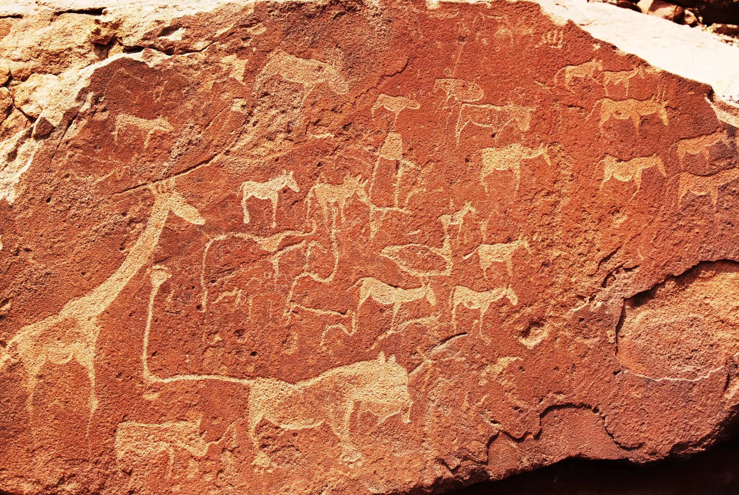 In the head of the shallow Huab Valley in southern Kunene, large sandstone slabs that have broken off the flat-topped escarpment lie in jumbled piles, their smooth surfaces covered with one of the continent’s greatest concentrations of rock engravings. They are collectively referred to as Twyfelfontein, meaning “uncertain spring” in Afrikaans, reflecting farmers’ fears about the local water source. This area is less frequented by tourists, especially much less by self-drivers, it is also much more remote and therefore much more expensive.