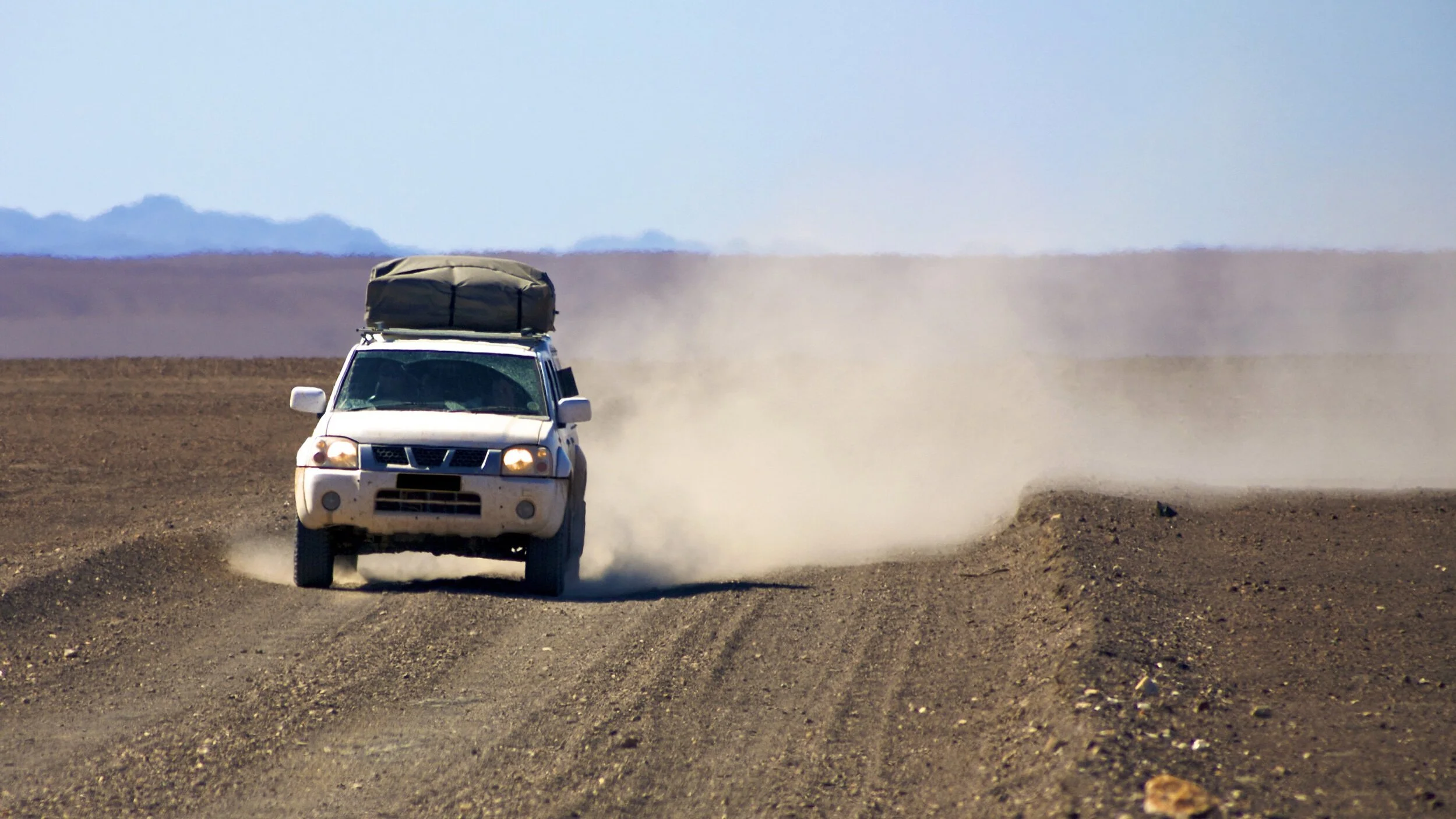 A high clearance car is a must. The gravel roads are so dry that they will struggle to absorb water, creating mud and floodings when sudden rain showers arrive, which smaller vehicles can struggle with.
