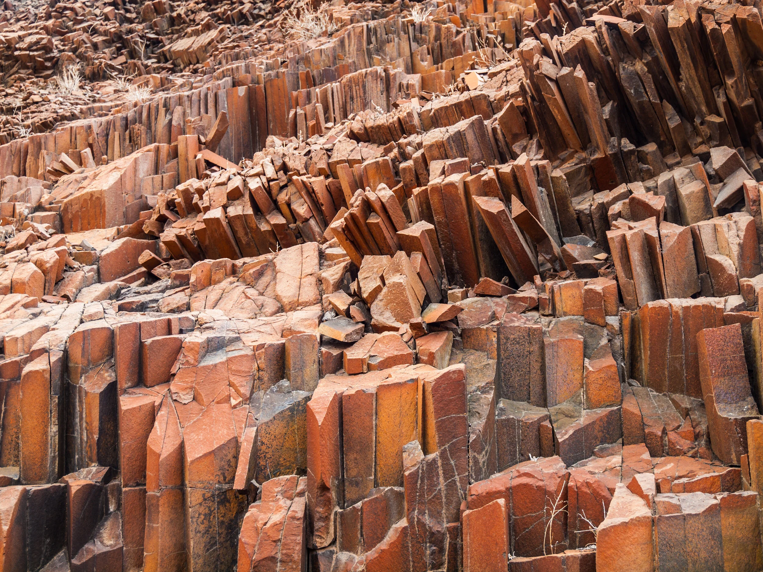 Soon after the turnoff, we passed the Uiba Oas Crystal Market. The perfect spot to meet locals and purchase some beautiful precious and semi-precious crystals from the surrounding mountains. With our crystal purchases glistening on the window sill, we continued on the D1918 until the right turn for the D3716. As we approached Spitzkoppe, our jaws hit the floor. We felt like we had landed on Mars! We crossed over the (dry) Spitzkop River until the left turn on the D1925, passing the community-run camp and desert restaurant. On our right was towering Montañas Pontok. We turned right into the gap between Spitzkoppe and Montañas Pontok until we finally reached our one-of-a-kind home for the night: Spitzkoppen Lodge. The boulder-strewn landscape has plentiful activities on offer, including hikes onto the mountains with local guides, open-air restaurants and bars, fossil sites and much more.