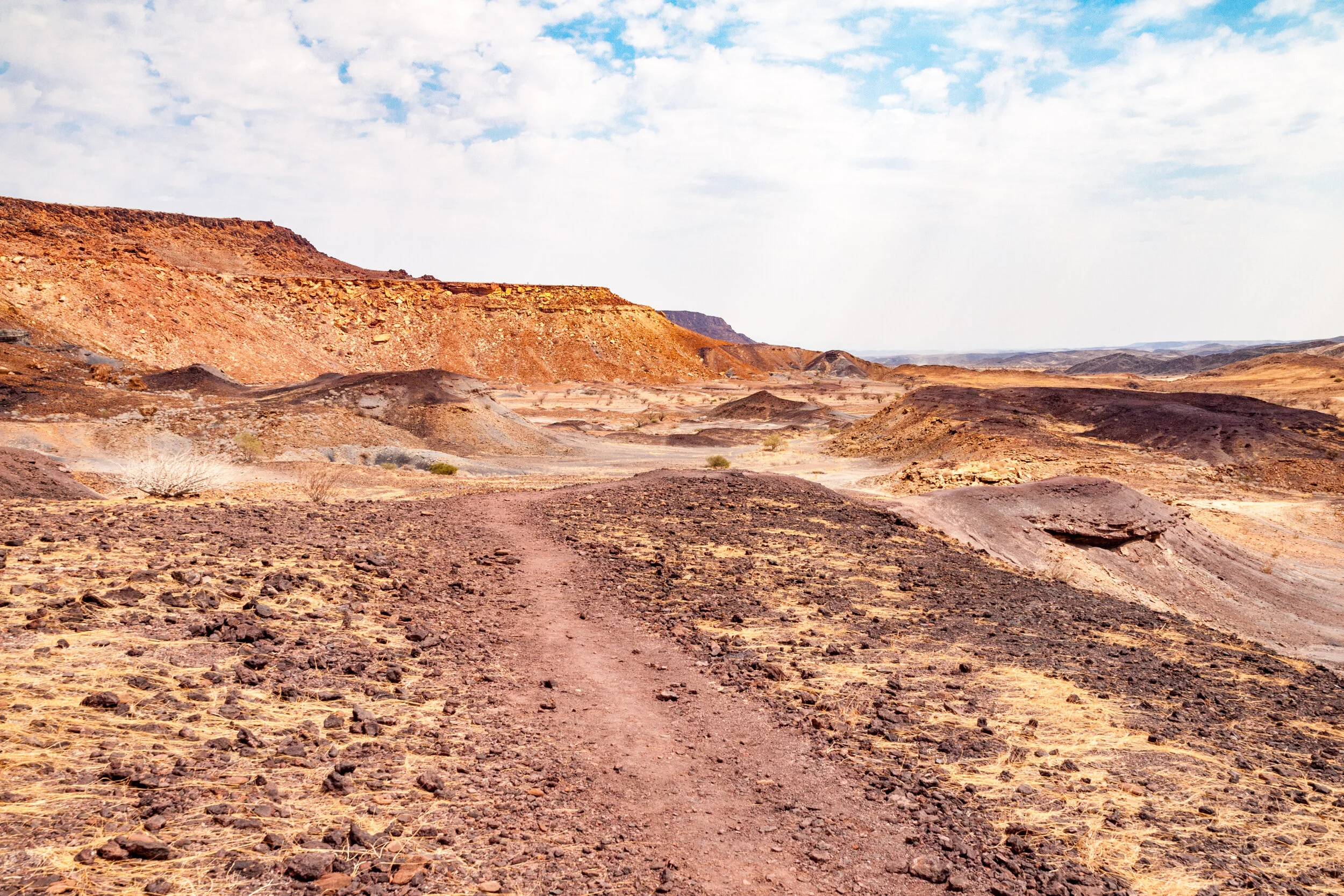 After 2 days of exploring life among the boulders of Spitzkoppe, we set forth for another desert retreat – Camp Kipwe. This time, in the Twyfelfontein Conservancy in Damaraland, about 223 km northwest of Spitzkoppe. This drive took us along the border of the arid Namib Desert towards Brandberg Mountain and took us around 3.5 hours with stops (so we'd recommend hitting the road after a hearty breakfast and coffee). Exiting Spitzkoppen Lodge from the north, we rejoined the D3716 that we entered on, this time travelling north. We arrived at a T-junction and turned left onto the D1930. There is virtually no civilization along this road, so be prepared for isolation and unreal scenes all to yourself! 93 km from Spitzkoppen Lodge, we eventually reached Uis, the perfect small-town stop to stretch our legs and refill our tummies. I recommend stopping at Cactus & Coffee for a quaint and unique desert dining experience.
