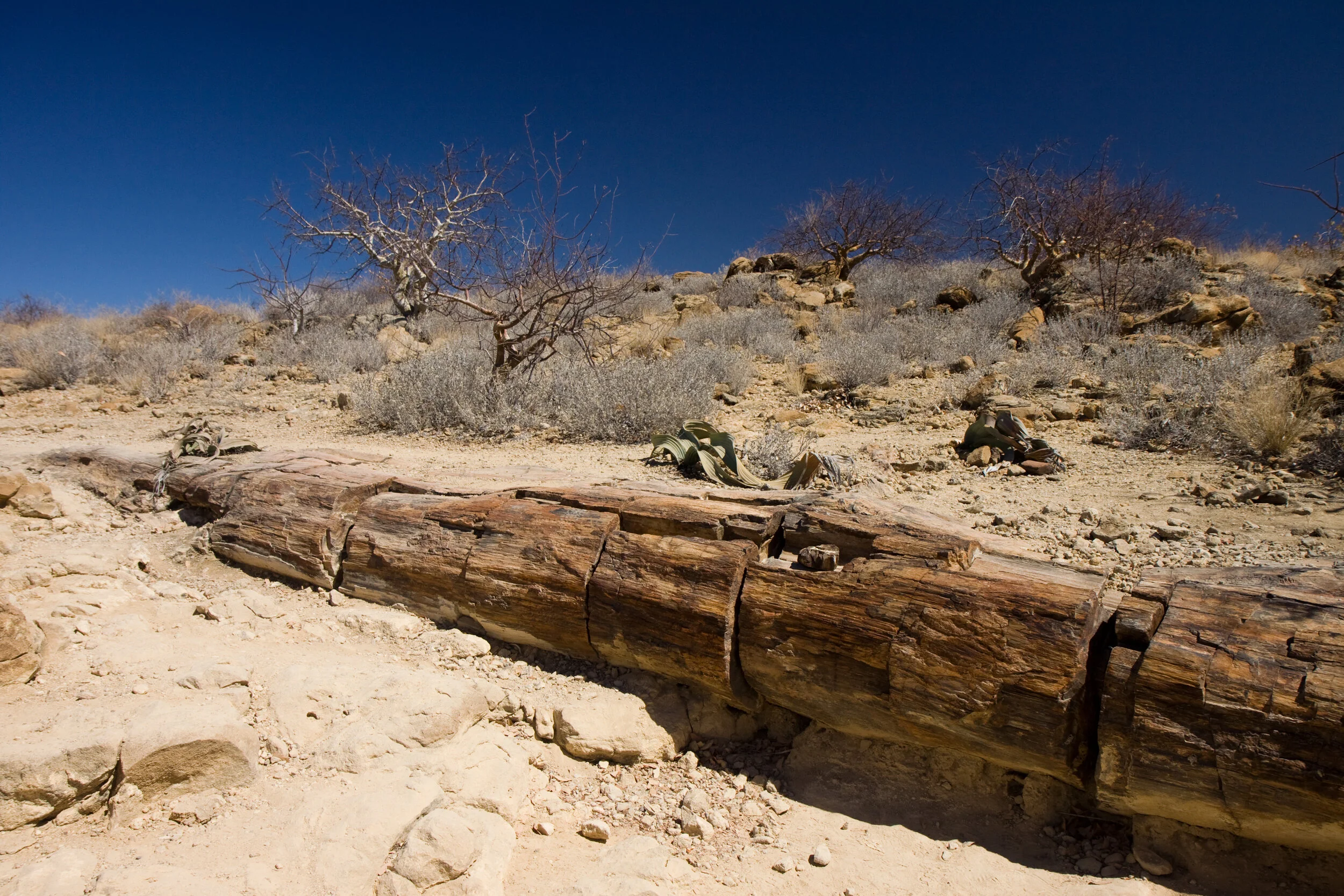 We were sad to leave our nest-like oasis in the heart of Twyfelfontein, but this was short-lived as we had another fantastic spot to experience next! The calls of wild African animals were beckoning, so we made our way east to Namibia's most famous safari destination – Etosha National Park. Trading red rock plains for white salt pans, we carried on along the D2612, passing the Damara Living Museum. This enriching cultural experience is well worth a stop as we learned about the lives of the locals who are experts at living in, and harmoniously with, their arid surroundings. We eventually reached a T-junction where we turned right onto the C39, passing another cultural museum on our left. Continuing on this road we reached the petrified forest 46 km west of Khorixas. We stopped here to check out the remains of enormous trees that have turned to stone!