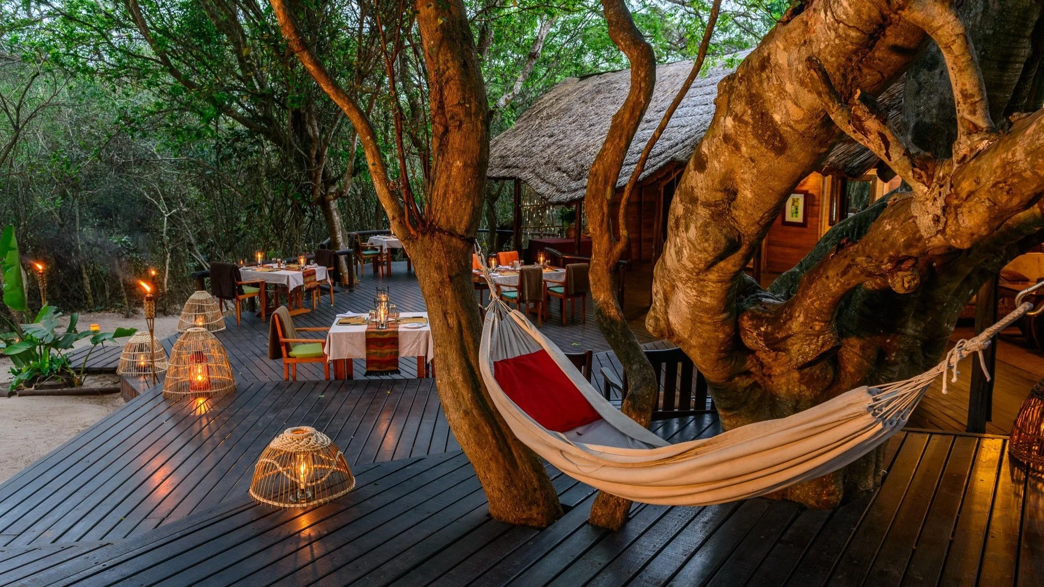 This intimate lodge offers a tranquil family getaway or a honeymoon of romantic bliss. Thatched bedrooms are set on raised wooden decks and hidden in the sand forest alongside the Kosi Lakes System. From a viewing deck shaded by Umdoni trees, guests can watch hippos and flamingos splashing around in the lake.